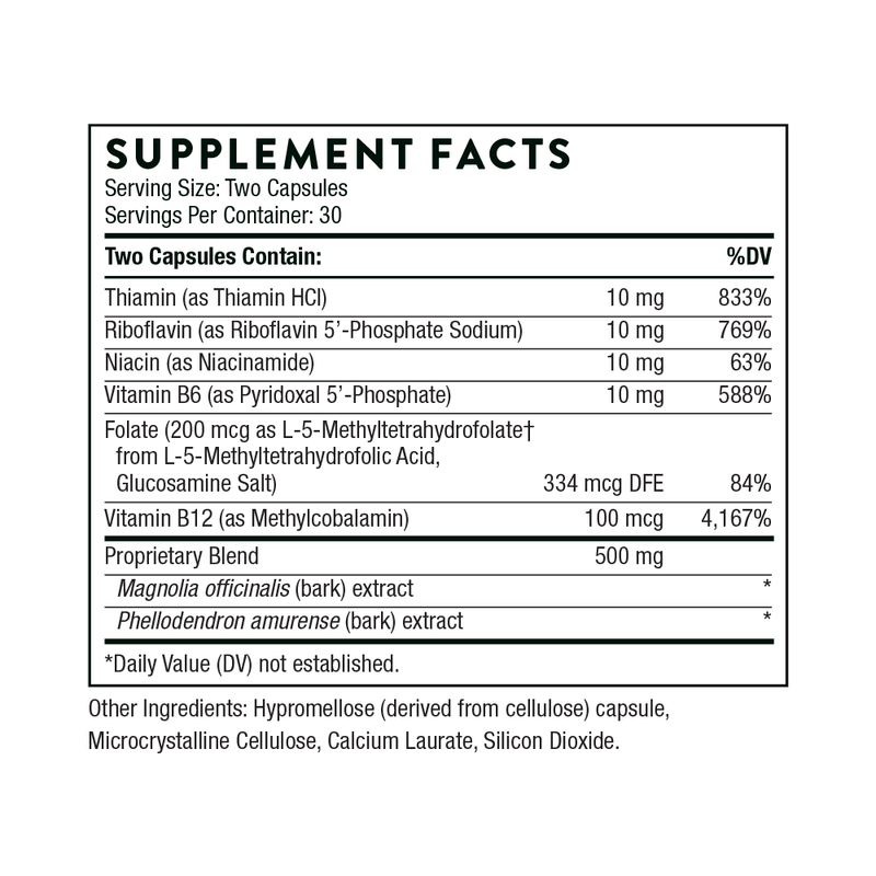 Thorne’s Craving and Stress Support combines two plant extracts with six B vitamins to provide nutritional support for the modern, over-stressed lifestyle.*