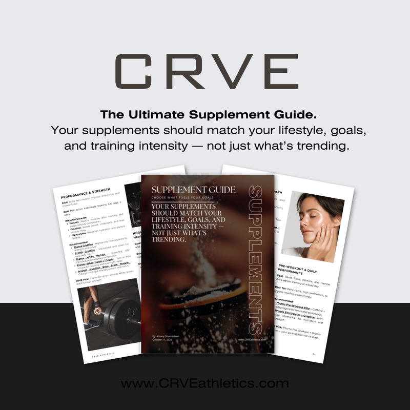 Simplify your supplement routine with the CRVE Supplement Guide — your go-to resource for choosing high-quality, effective products that match your goals.