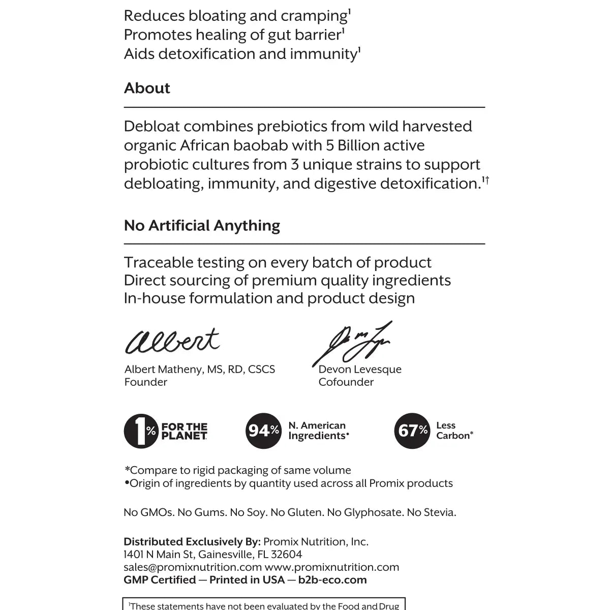 No genetically modified organisms (GMOs) ingredients or processing aids are used in the production of any Promix products. Produced in GMP certified facilities.